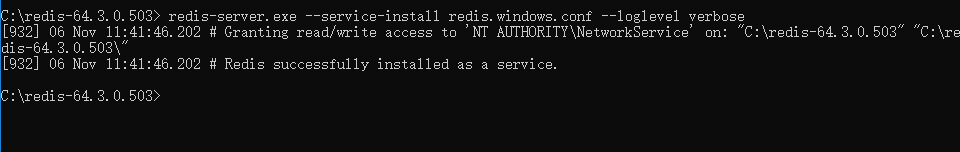 然后在创建一个新的命令提示符输入 redis-server.exe --service-install redis.windows.conf --loglevel verbose进行安装