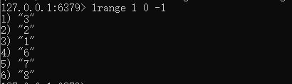 lrange 键名 start stop 说明:起始下标为零,最后一个为-1