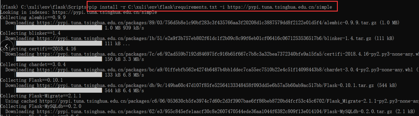 pip install -r (刚才下载文件的地址,可以直接将文件拖进来) -i https://pypi.tuna.tsinghua.edu.cn/simple(这是镜像源,如果不行就换一个)回车就开始下载