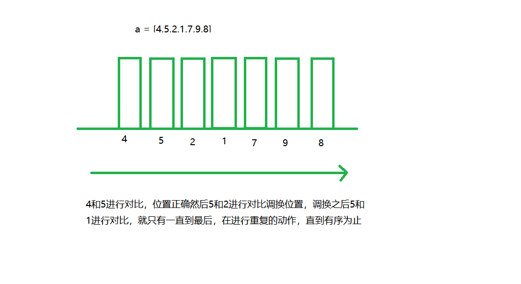 冒泡排序的方式就是不停的和身边的元素进行对比来判断是否需要交换位置,这种方法就会很容易理解