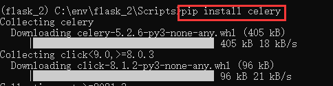 当然可能会报错这是因为在celery用到了协程,协程在使用的使用需要用猴子补丁,具体解决方式是,首先下载eventlet: