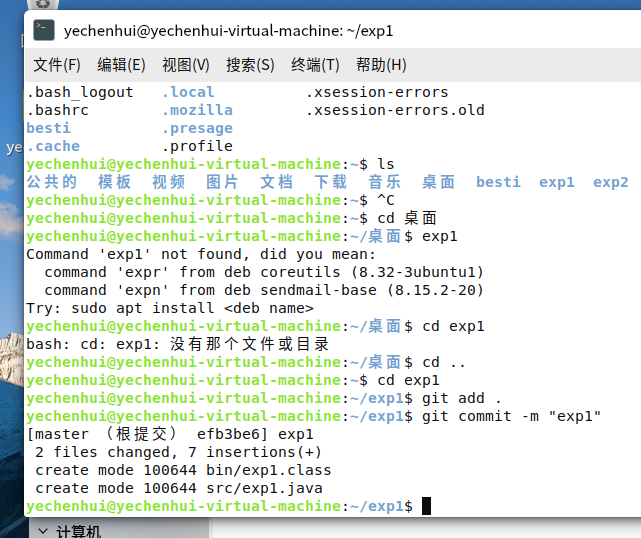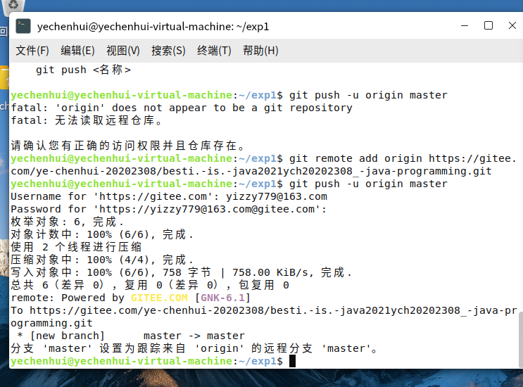 运用git add和git commit命令将实验文件的目录转移至之前同步的码云仓库目录中。
