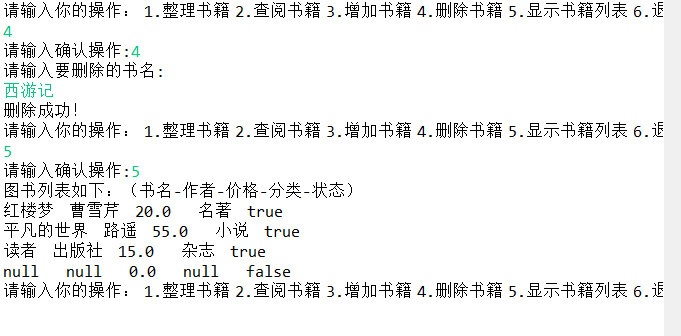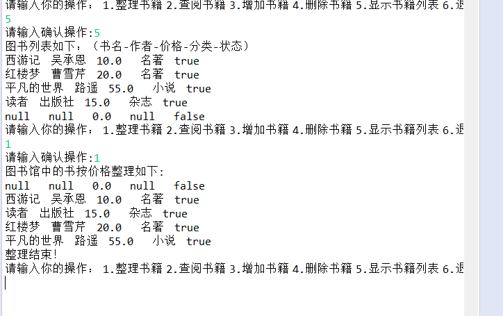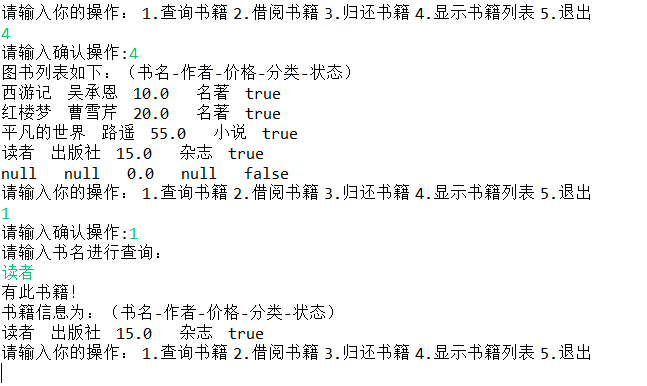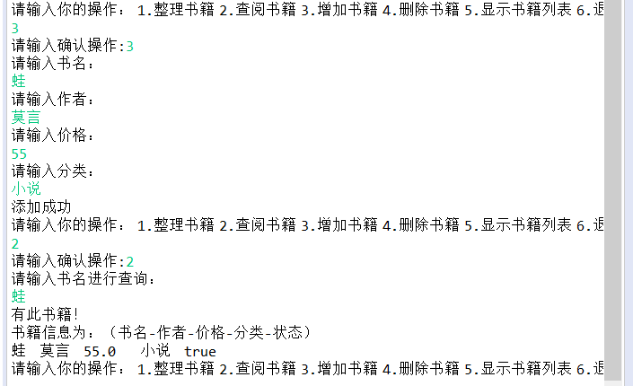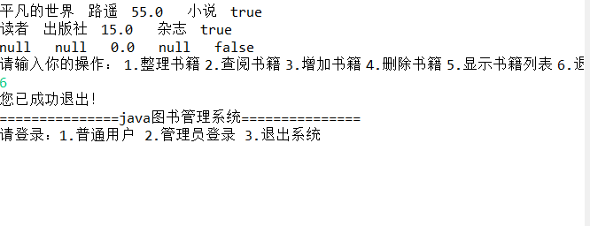 系统主要有两种登陆方式,一种是普通用户,一种是管理员。普通用户功能:查询、借阅、归还、查看列表、退出。管理员功能:整理、查阅、删除、查看列表、退出。