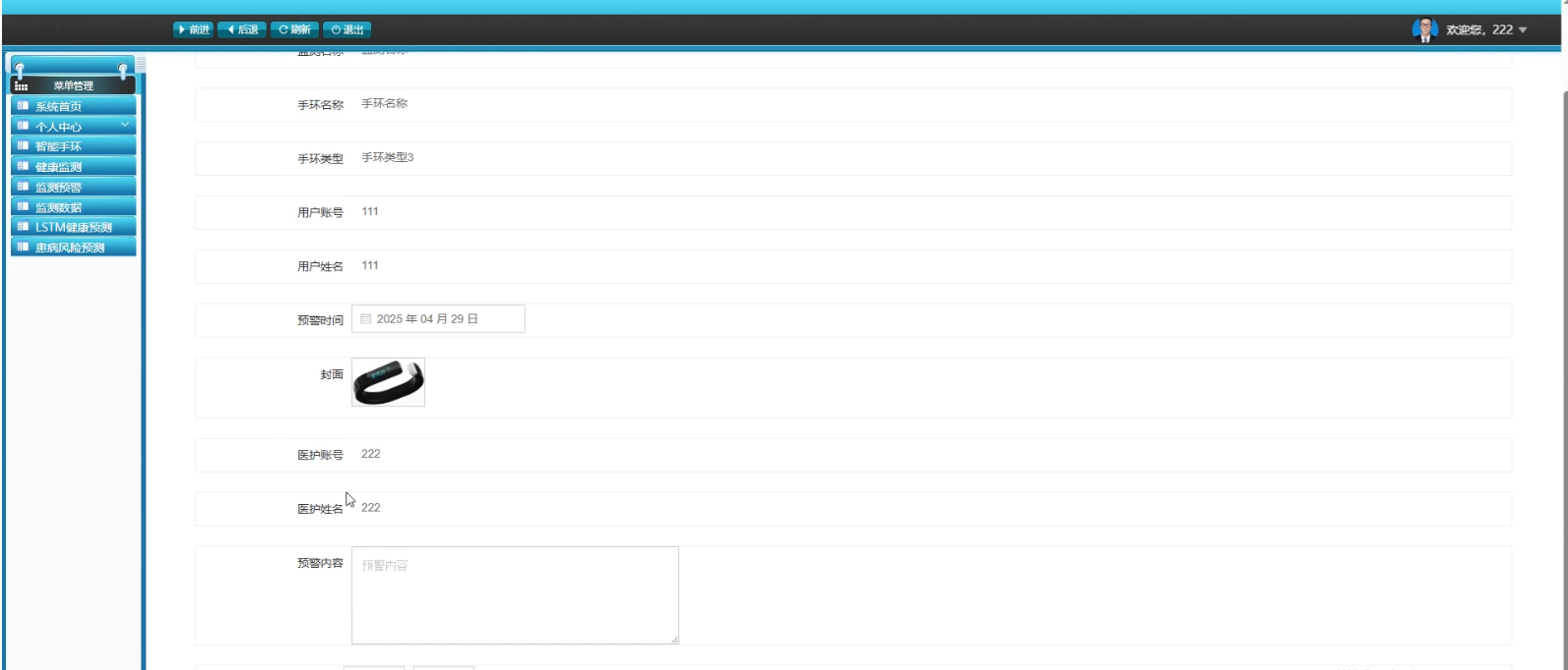 通过医护人员能够管理智能手环的详细信息,包括手环名称、颜色、价格、上市日期等,确保手环信息的完整性与准确性。