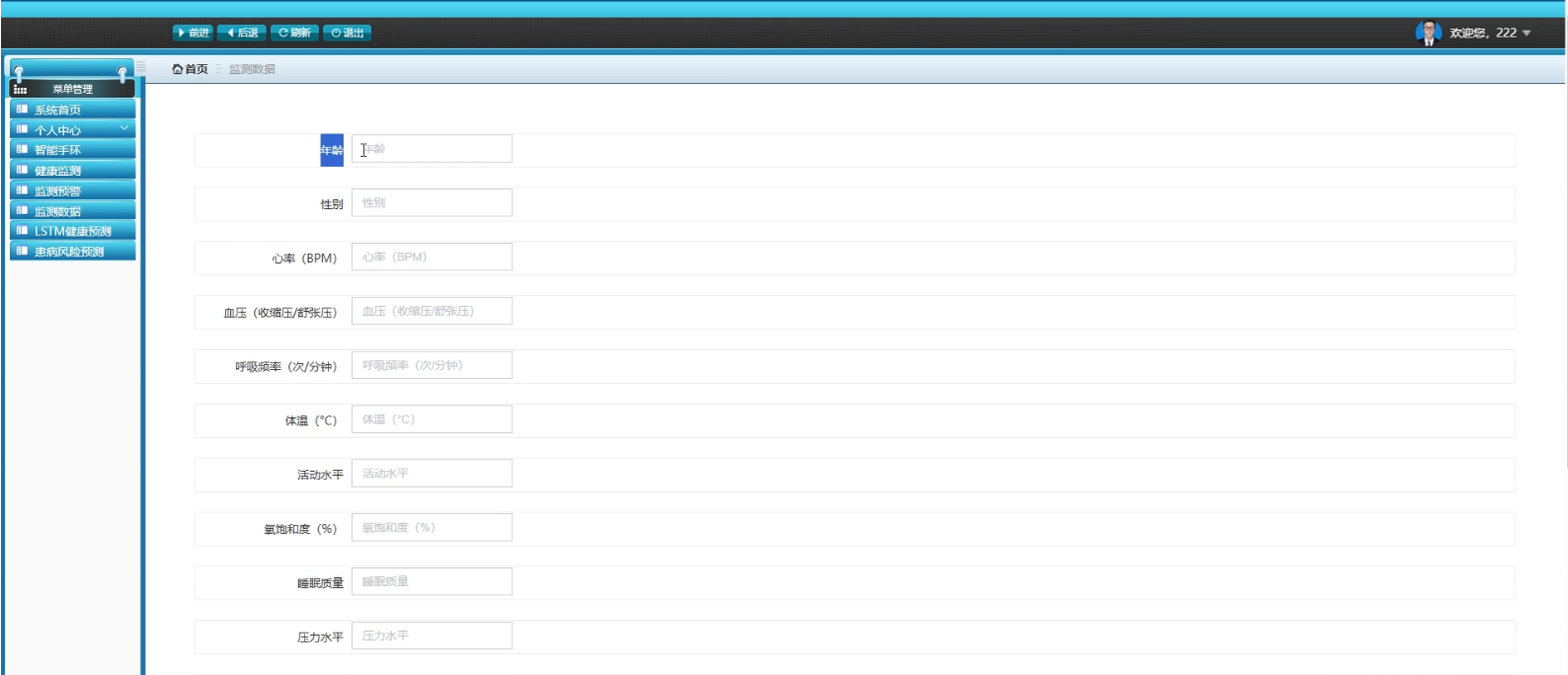 本系统通过Python语言及相关大数据分析工具,如Spark和Hadoop,实现了智能健康监测系统的设计与开发。环境通过对用户健康数据的实时采集与分析,提供了氧饱和度、胆固醇水平、血糖、运动消耗卡路里等健康指标的监测,并采用预测算法对用户的健康风险进行分析。用户可能经过可视化大屏查看健康趋势,援助个人及时了解健康状况变化。系统的高效数据处理能力,结合LSTM和随机森林回归等算法,提供了精准的健康预测。