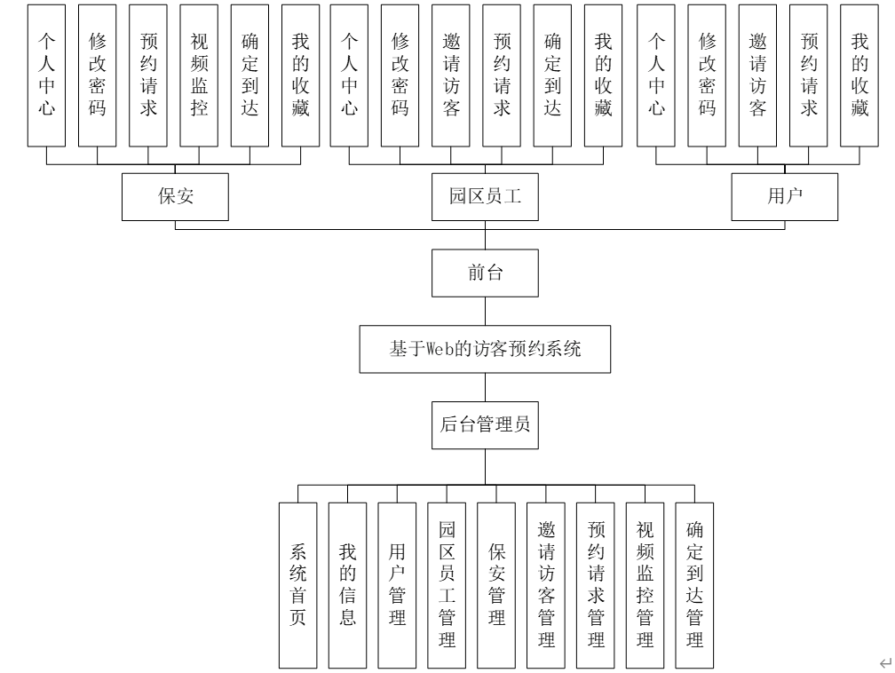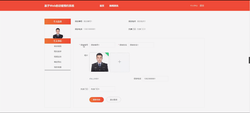 该系统采用 Java 技术开发,基于 SSM 框架搭建后端架构,结合 Vue 框架构建前端界面,以 MySQL 为数据存储支撑。核心功能涵盖系统首页、我的信息、用户管理、园区员工管理、保安管理、邀请访客管理、预约请求管理、视频监控管理、确定到达管理等模块。具体而言,承受用户注册登录后发起预约请求或接收访客邀请,园区员工可管理邀请及确认访客到达,保安可查看预约信息并凭借视频监控掌握现场情况;体系还涵盖用户信息维护、新闻资讯发布、轮播图管理等基础功能,个人中心则帮助修改密码、管理我的收藏等个性化操作。