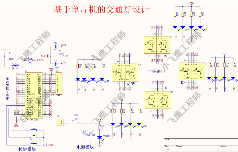 3、设置自动、手动、特殊情况三种方式。自动模式下自动显示各种状态的倒计时,红绿灯自动切换;手动模式下行根据道路车流量情况手动调节红灯绿灯相应时间;紧急情况下所有路口红灯亮,黄灯闪烁,以便120、110等及时通行。