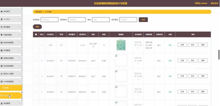 - 居民可以修改个人信息,对居民出入等详情进行管理;