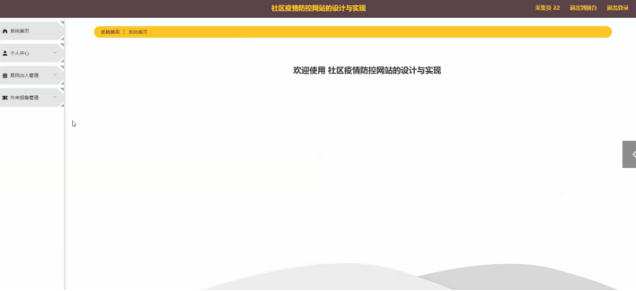 居民登录到社区疫情防控网站,行对系统首页、个人中心、居民出入管理等功能进行相应操作,如图5-15所示。