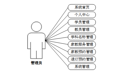 管理员进入主页面,首要功能包括对个人中心、学员管理、教员管理、学科名称管理、家教服务管理、家教预约管理、退订预约管理、系统管理等进行操作。管理员主界面如图5-7所示: