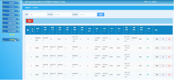 否通过进行查询或删除退订预约列表,并根据必须对退订预约详情信息进行详情、修改或删除操作。如图5-11所示:就是管理员点击退订预约管理。在退订预约页面输入标题、学科名称和