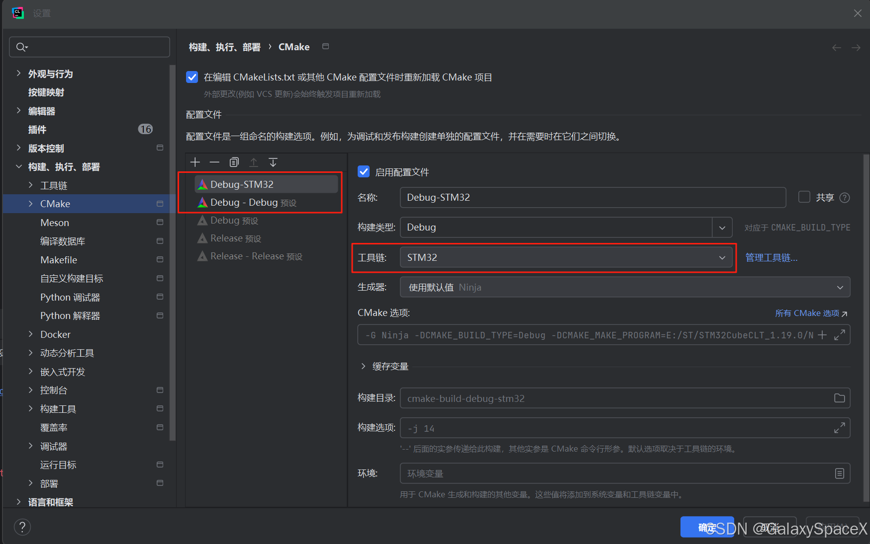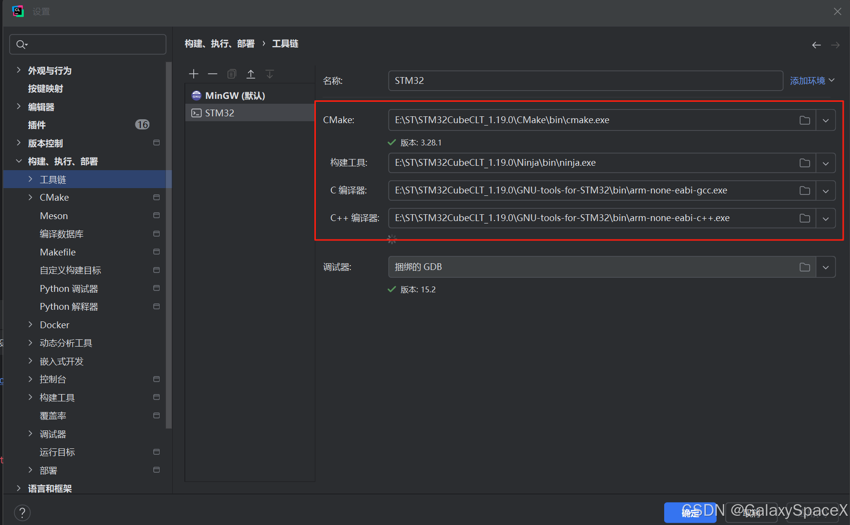 构建工具:E:\ST\STM32CubeCLT_1.19.0\Ninja\bin\ninja.exe