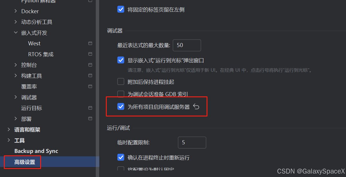 在高级设置里勾选:为所有项目启用调试服务器