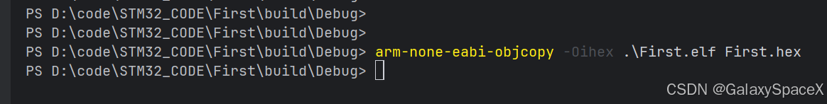 arm-none-eabi-objcopy -Oihex .\First.elf First.hex