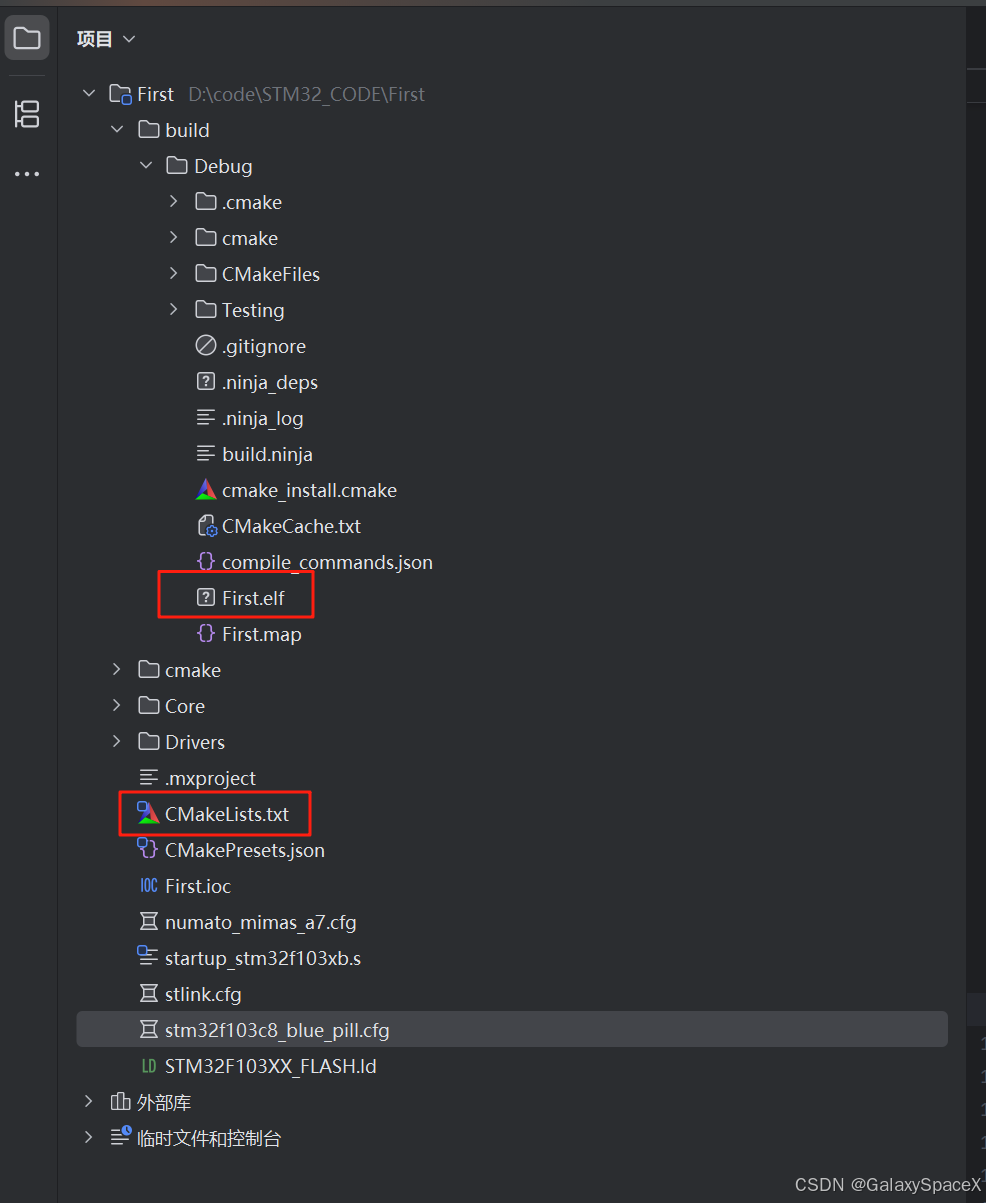 对应的根据CMakeLists文件生成First.elf文件
