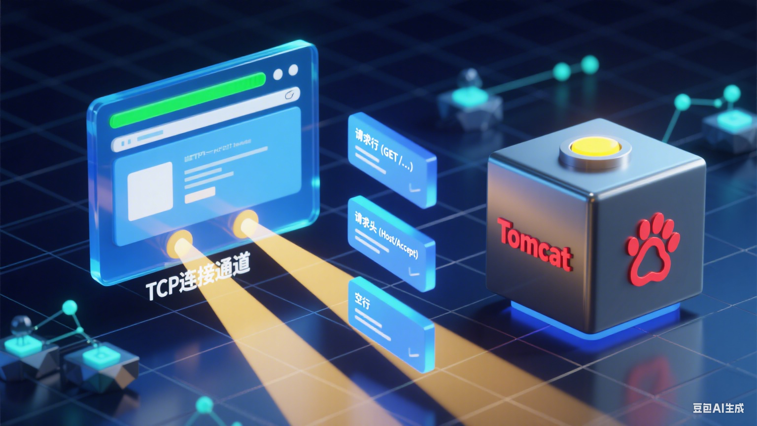 4. 浏览器发送HTTP请求报文:浏览器构造HTTP请求报文,将请求报文通过已建立的TCP连接发送给服务器(Tomcat)