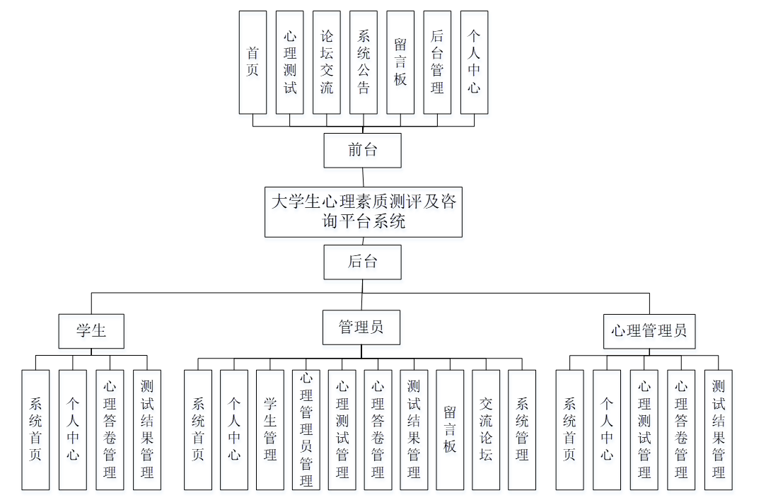 (1)学生可以浏览首页、心理测试、交流论坛、系统公告、留言板、后台管理、个人中心等;