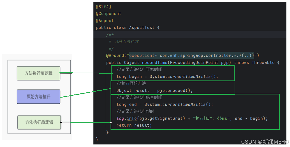 log.info(pjp.getSignature() + "执⾏耗时: {}ms", end - begin);