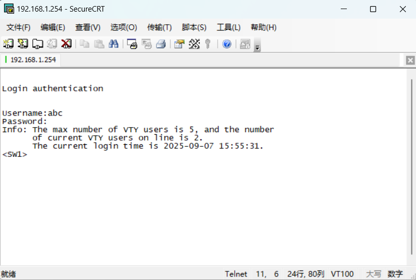 local-user abc service-type telnet \\授权用户abc使用Telnet服务登录设备