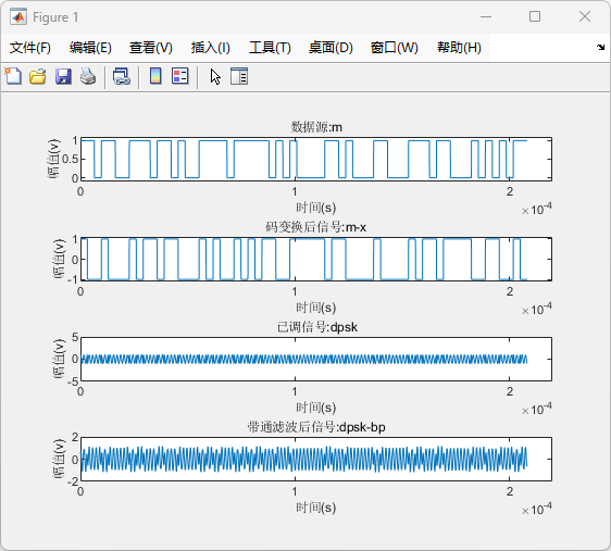 已调信号 dpsk:相对码乘载波得到的差分相移键控调制信号。