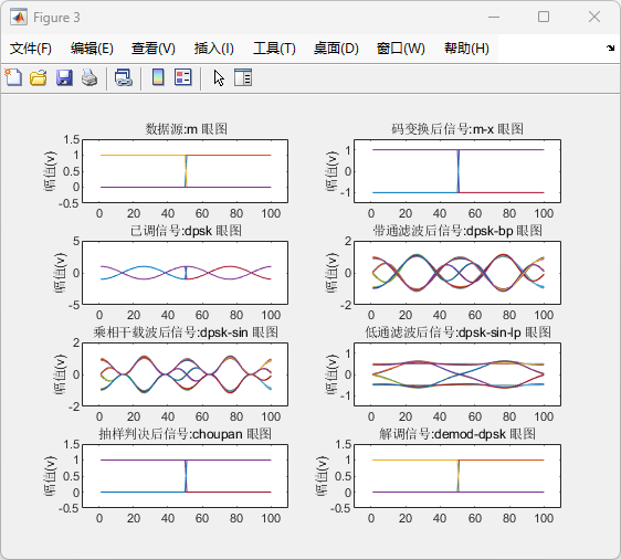 已调信号 dpsk 眼图:调制信号受载波影响,眼图呈周期性正弦包络。