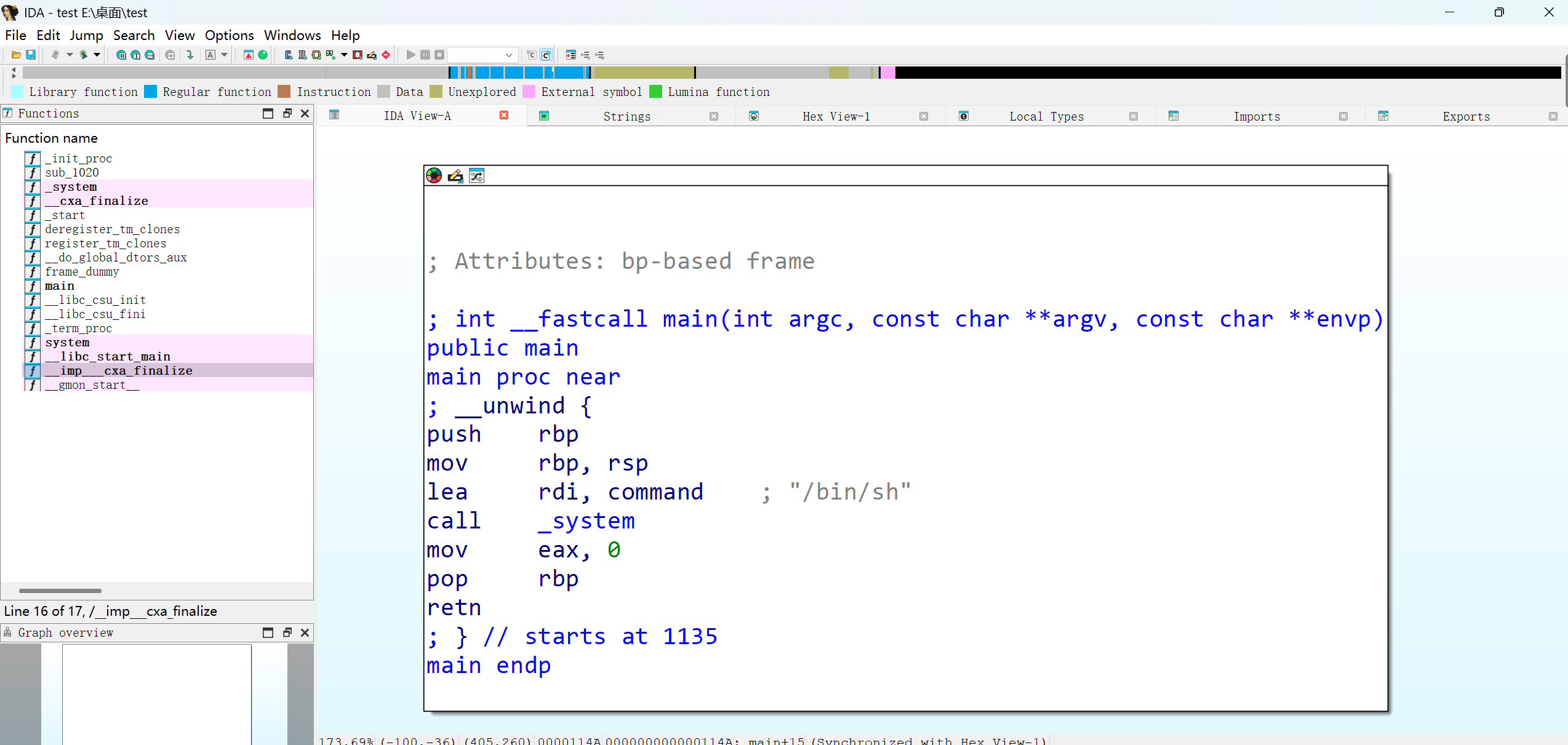 2.IDA静态分析:用IDA Free 9.0打开test,运用F5生成伪C代码,提升可读性,便于发现漏洞;
