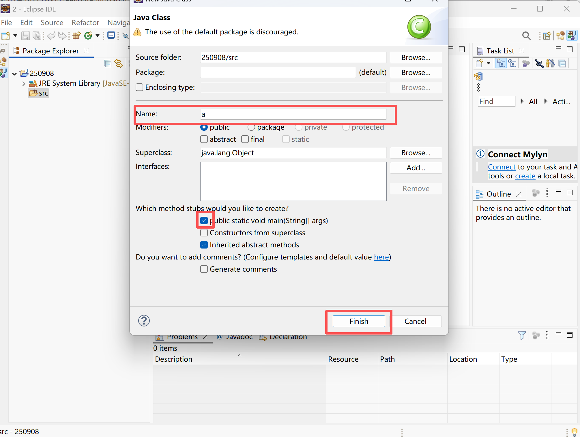输入类名--方框✔--Finish