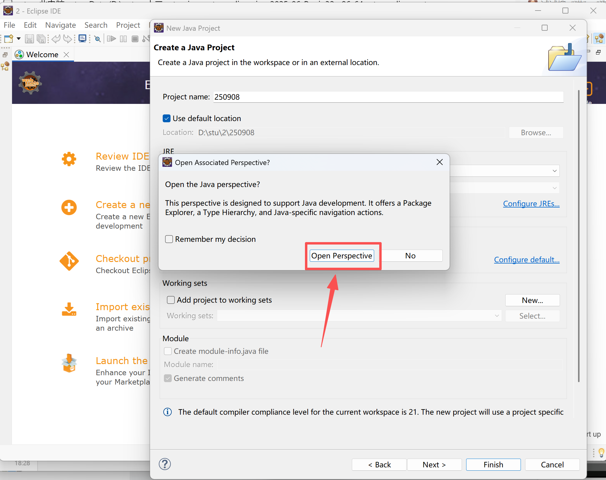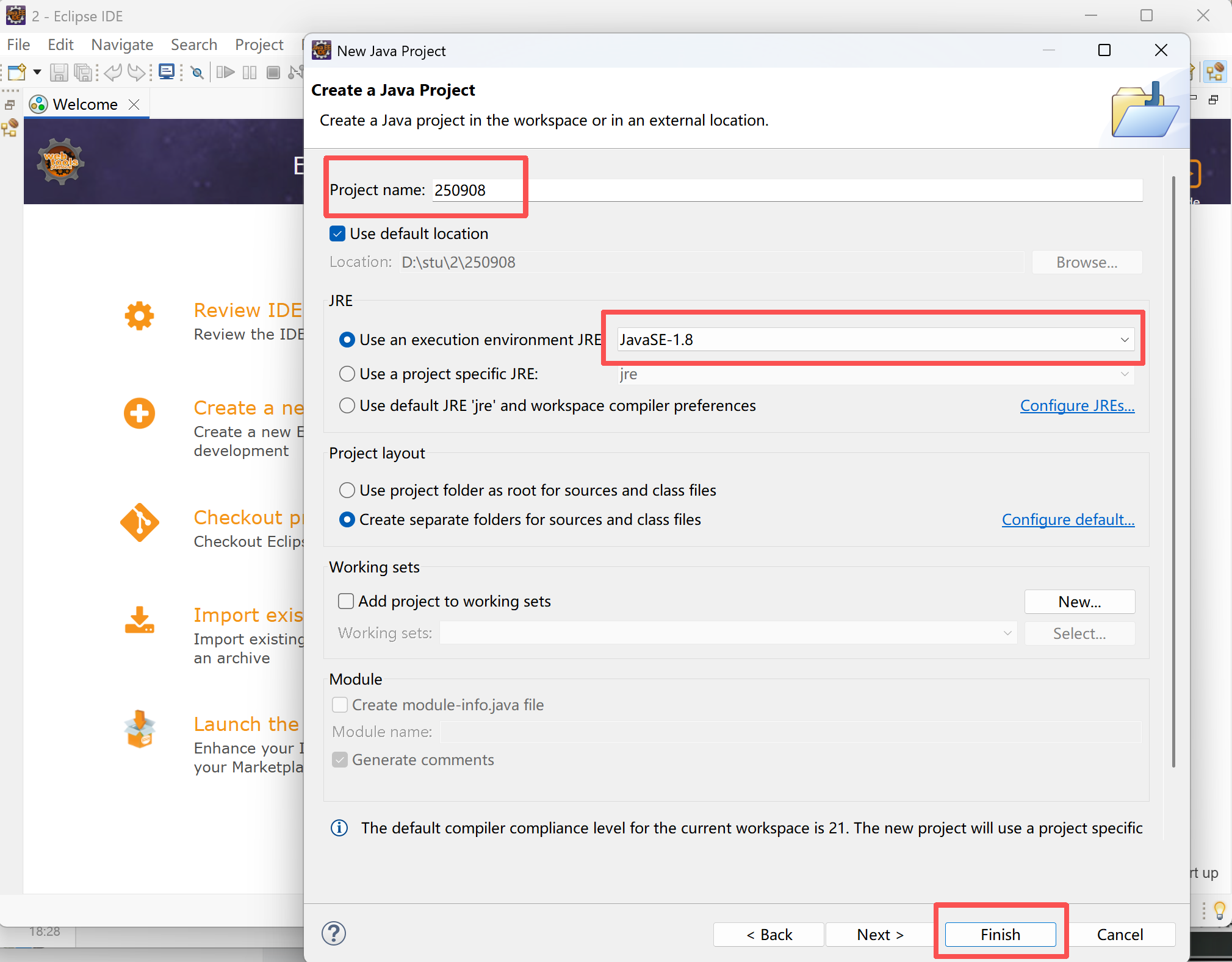 输入项目名字--选择JRE--Finish