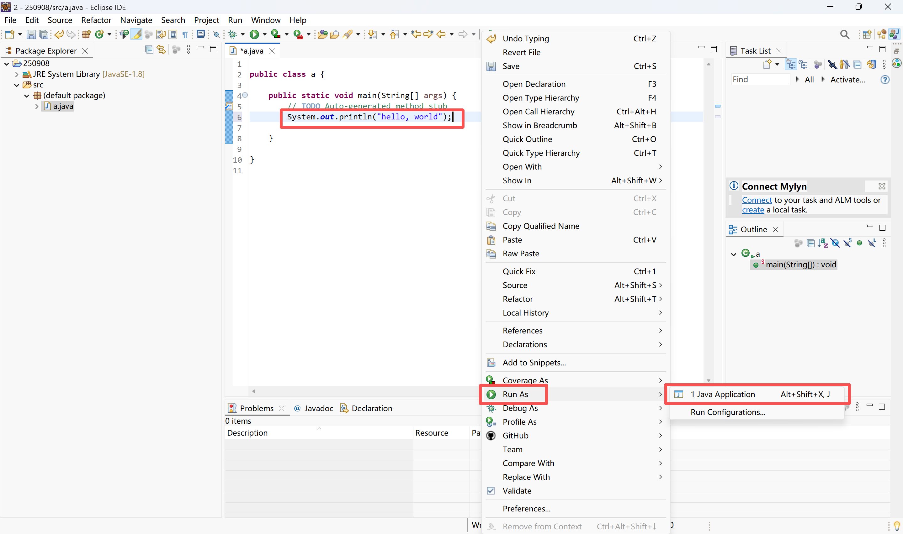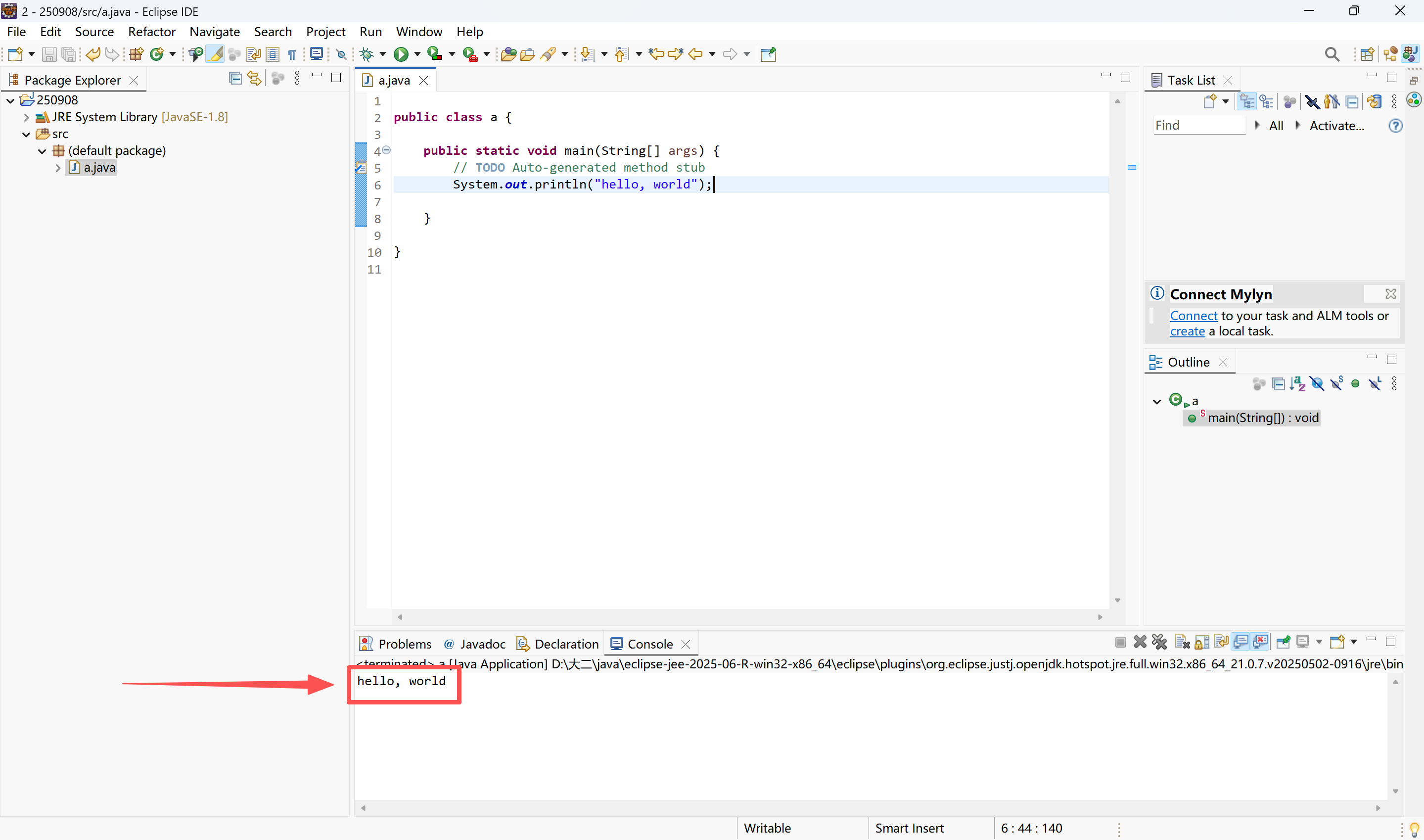 四、使用eclipse输出“hello, world”