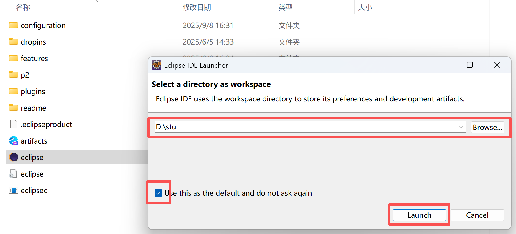 双击--选择路径--方框✔--Launch