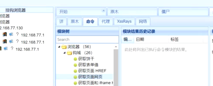连接上beef后 有人登录钓鱼网站就会 查看信息 cookie 和执行命令