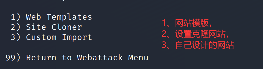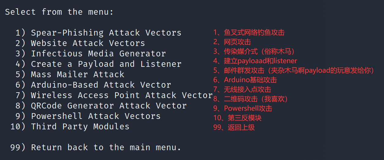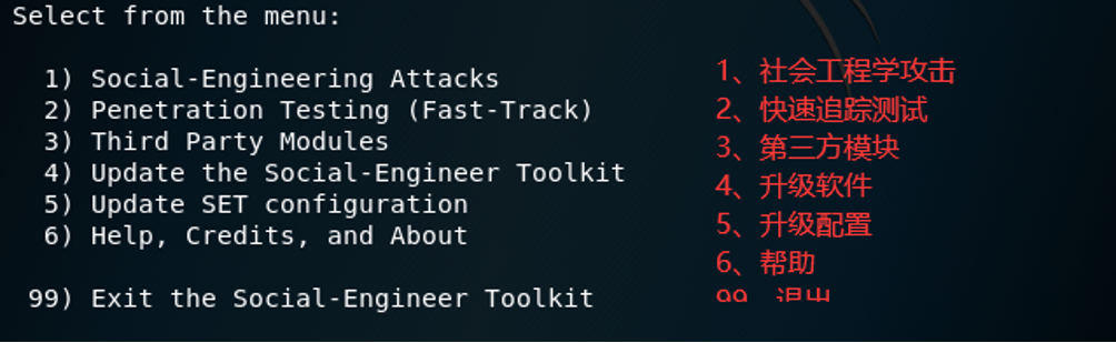 setoolkit,是一个为社会工程设计的开源渗透测试框架。SET具有许多自定义攻击向量,可快速进行可信的攻击。