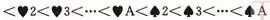 方法1:先对花色排序,将其分为4 个组。即梅花组、方块组、红心组、黑心组。