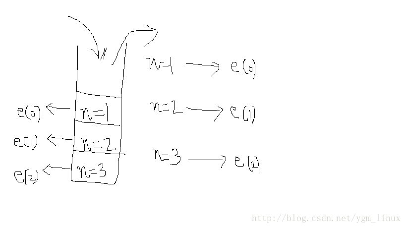 #include "stdio.h" #include "windows.h" /* 递归调用运行过程: 递归函数调用之前代码(函数的调入): 每次进入都会运行一遍(调用函数后面的都不运行),直到不满足某个条件而退出。递归函数调用之后代码(函数的返回): 每次退出时运行一遍(调用函数前面的都不再运行)。 传入的參数即局部变量(调用前对參数的訪问顺序如54321)。将所有存在栈中 最后返回时就像出队的过程(先入先出如12345) */ #include "stdio.h" int g_num; void up_down(int n) { printf("call-n=%d: n-addr=0x%x\n",n,&n); if (n <g_num) { up_down(n+1); } printf("return-n=%d: n-addr=0x%x\n",n,&n); } /* 注意函数參数是存在栈中的; 首先入栈操作: n=1先入栈 n=2再入栈 n=3再入栈 当n=3时候不满足条件了接着函数进行出栈操作: 依次打印3, 2, 1 结果: call-n=1: n-addr=0x18fef8 call-n=2: n-addr=0x18fea0 call-n=3: n-addr=0x18fe48 return-n=3: n-addr=0x18fe48 return-n=2: n-addr=0x18fea0 return-n=1: n-addr=0x18fef8 */ int main() { g_num = 3; up_down(1); return 0; }