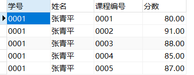 (1)创建一个存储过程stu_grade,查询学号为0001的学生的姓名、课程名称、分数。