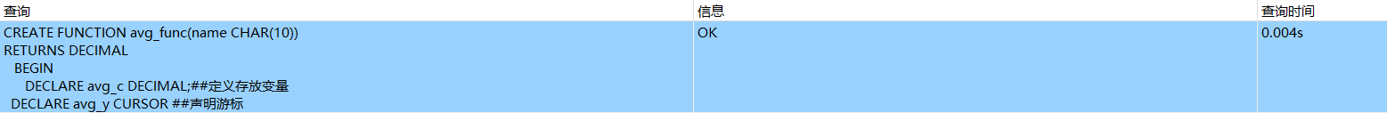DECLARE avg_y CURSOR #声明游标
