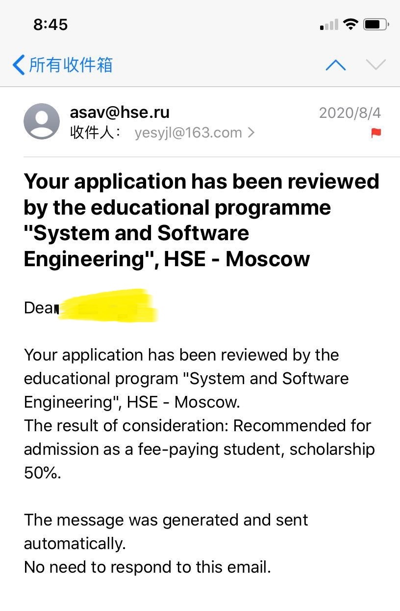有幸获得半等奖学金,还是很开心的,问了那边老师,这个是两年都会减免一半的学费。因为疫情,第一学期还是好好待在国内,线上学习。下一年此时或许已经在莫斯科了吧。