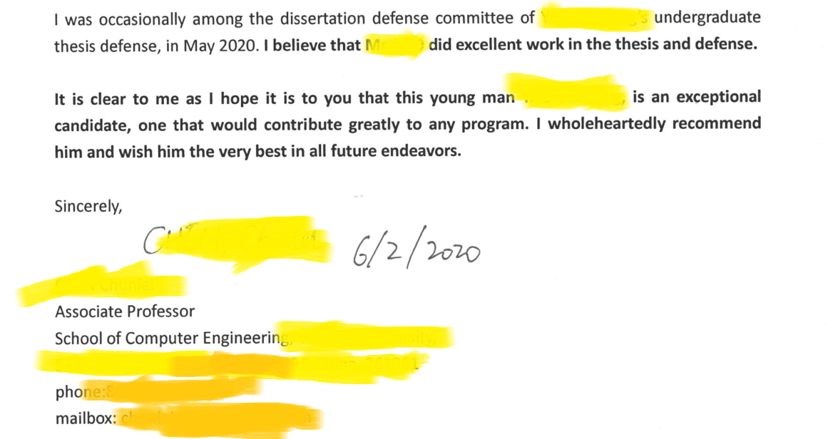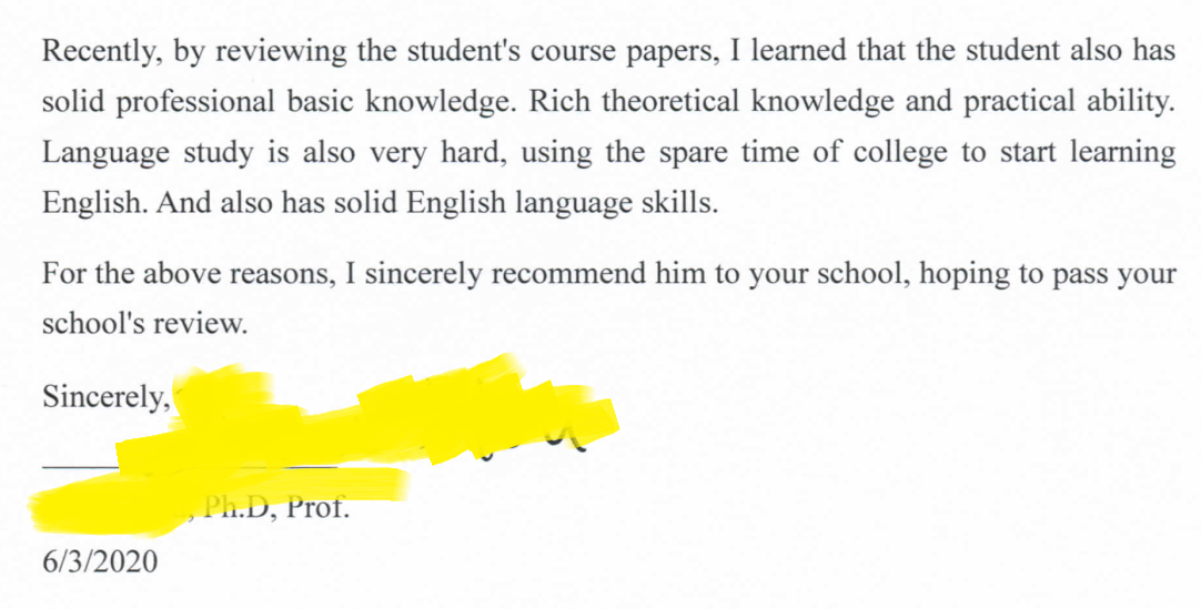 偶然的机会,得知了HSE。再查阅了大量资料后,是很合适的,无论是学校的排名和教学。还有一点,计算机专业也很强。而我要读的就是计算机方向。恰好是有英语授课的专业。感谢老师陈,和侯写的recommendation,这里只截取部分。