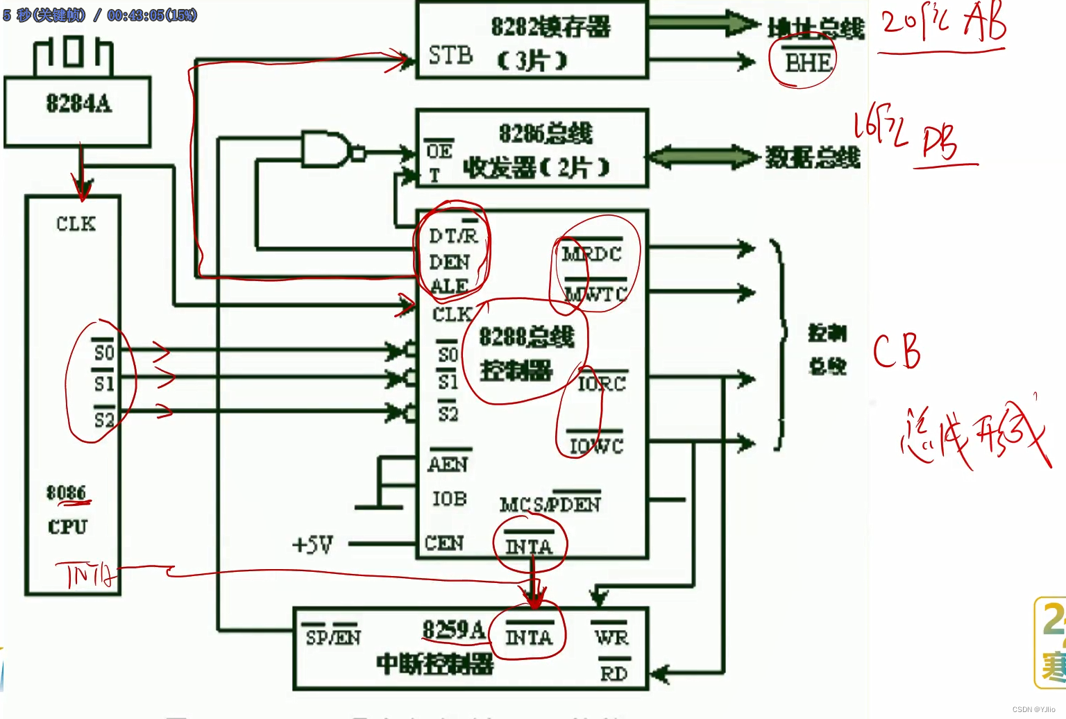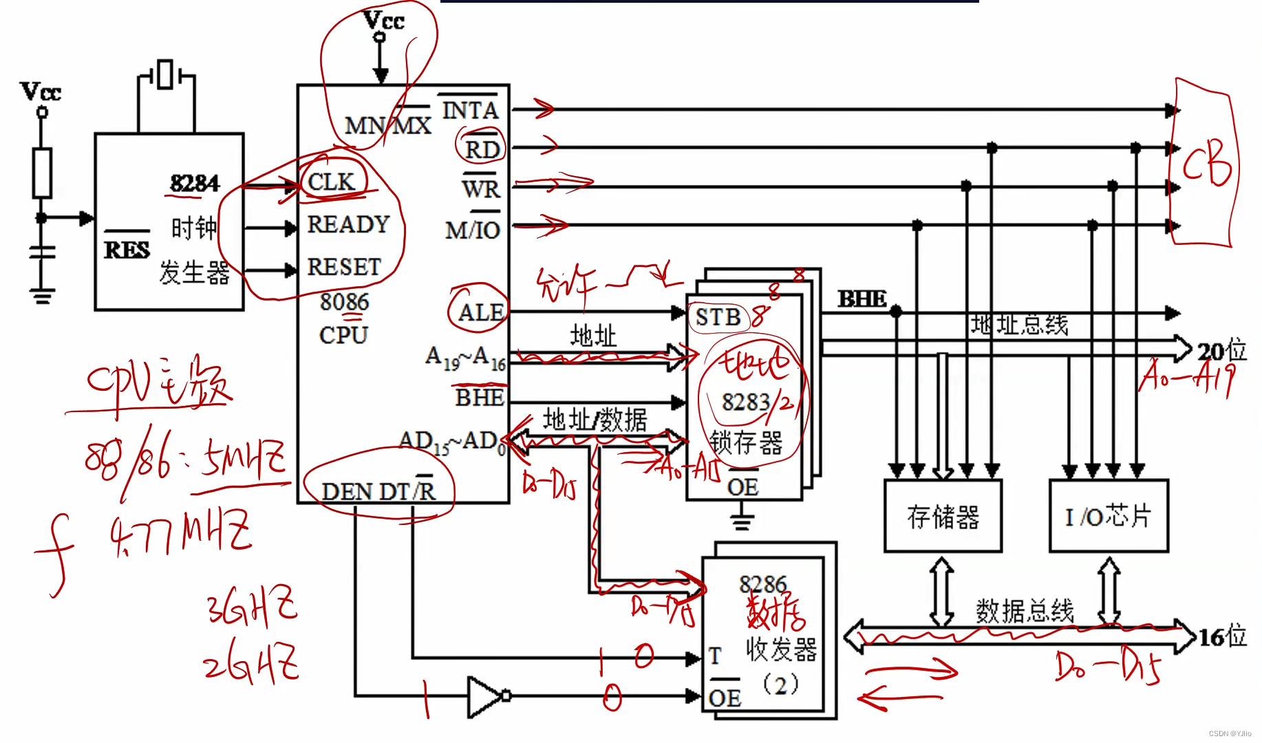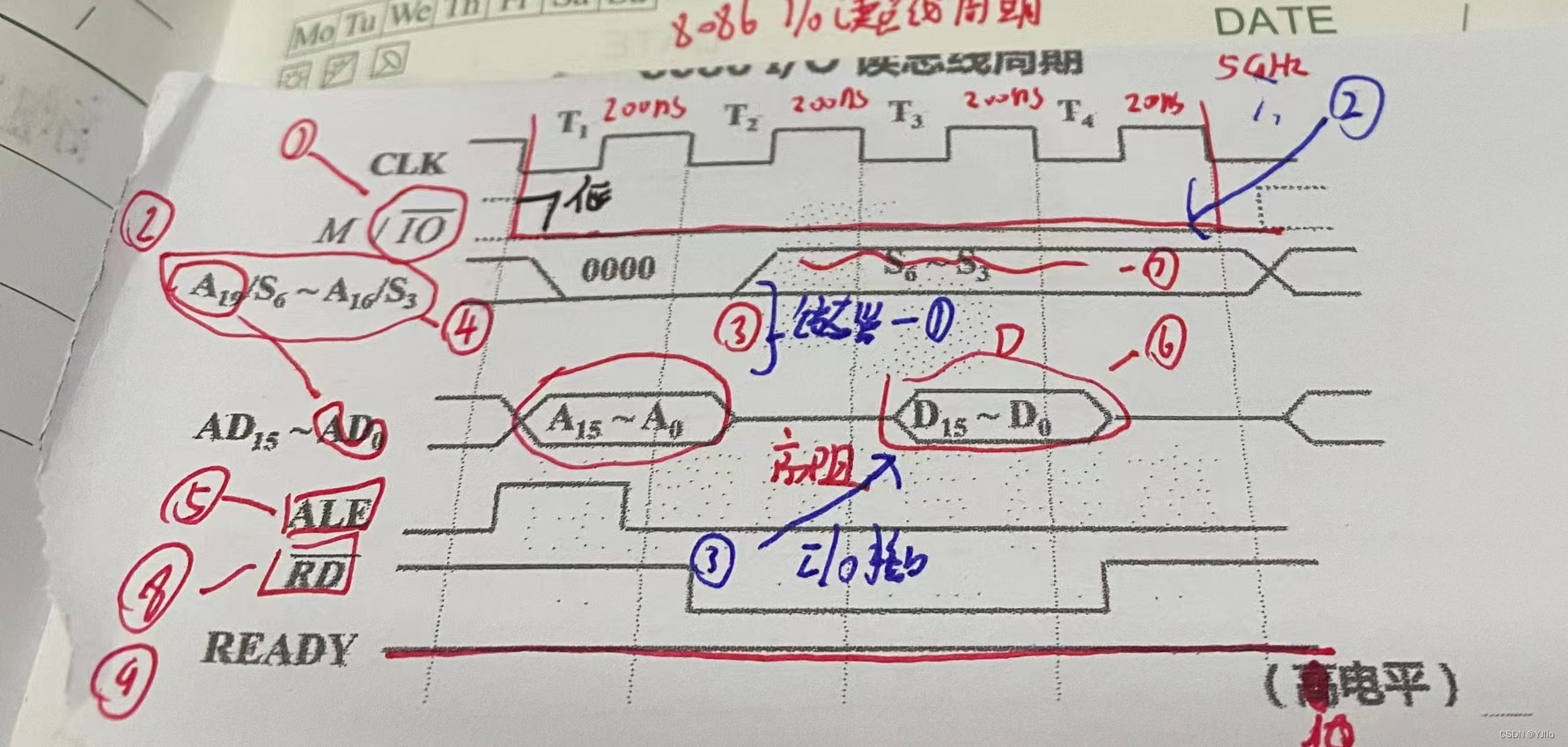 A0到A19 20根地址线 :在T1 200ns 时期 ③ 传送的是地址信号(A0~A15)④ 在访问I/O时 高4位 的地址线无效