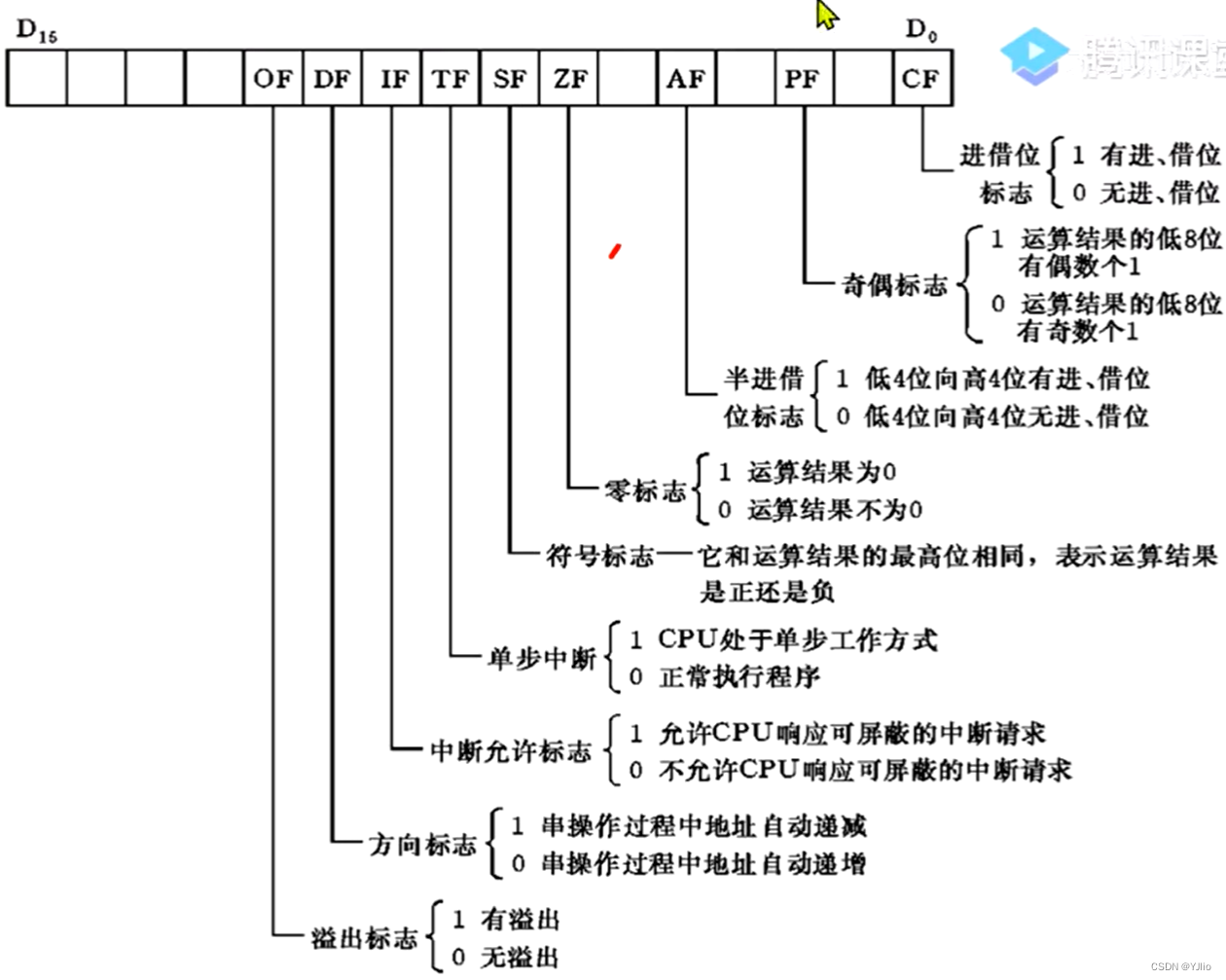 这6个标志位用于控制和记录CPU的运算状态和执行结果。它们的状态可以影响程序的执行路径和条件分支。所以,虽然标志寄存器有16位,但只有6位用于标志位。