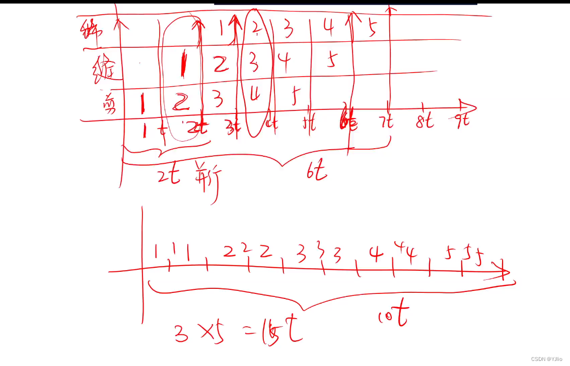 第一个时间 T 第二个时间T 一共到6T 第一个需要两个t就出了成品