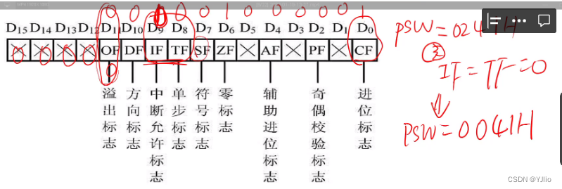 PSW原来是 0241H 把IF和TF清0 原来的IF是1,清0了之后 就是0041H