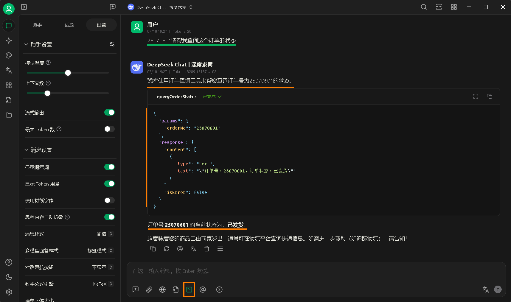 CallToolResult[content=[TextContent[audience=null, priority=null, text="订单号:25070601,订单状态:已发货"]], isError=false]
