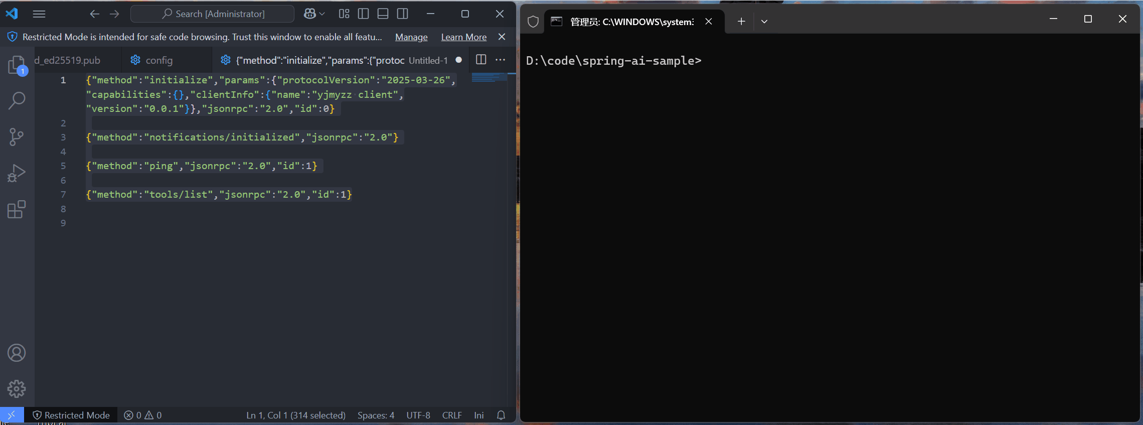 {"method":"initialize","params":{"protocolVersion":"2025-03-26","capabilities":{},"clientInfo":{"name":"yjmyzz client","version":"0.0.1"}},"jsonrpc":"2.0","id":0}