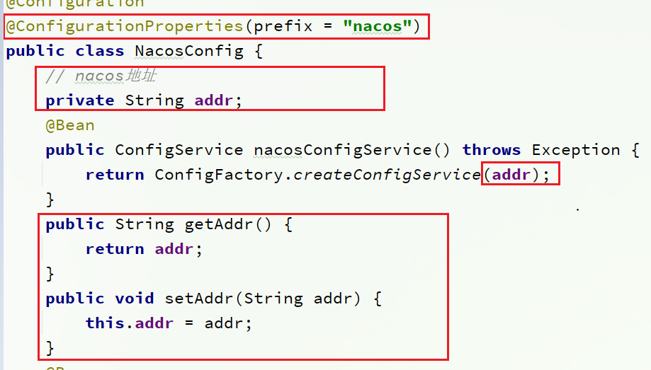(1)修改NacosConfig类,修改其中的nacos地址,让其读取application.properties中的配置