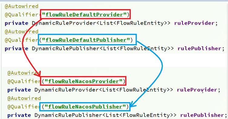 6.配置nacos数据源,修改com.alibaba.csp.sentinel.dashboard.controller.v2包下的FlowControllerV2类,让我们添加的Nacos数据源生效