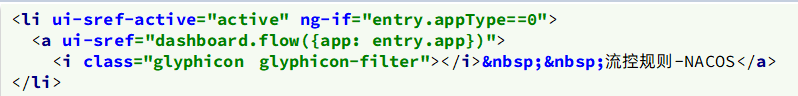 7.修改前端页面,添加一个支持nacos的菜单,修改src/main/webapp/resources/app/scripts/directives/sidebar/目录下的sidebar.html文件