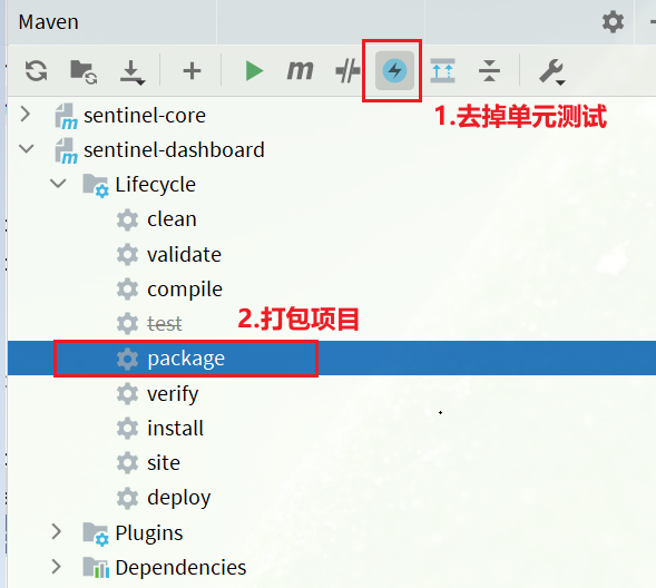 8.重新编译、打包项目,运行IDEA中的maven插件,编译和打包修改好的Sentinel-Dashboard