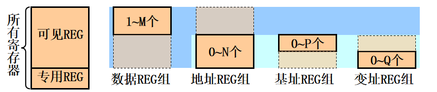 (2)数据寄存器与地址寄存器常混用,称作通用寄存器(GPR)