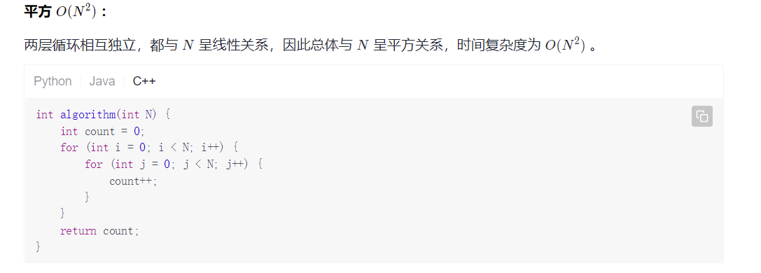 通常情况下,空间复杂度指在输入数据大小为 N 时,算法运行所使用的「暂存空间」+「输出空间」的总体大小。